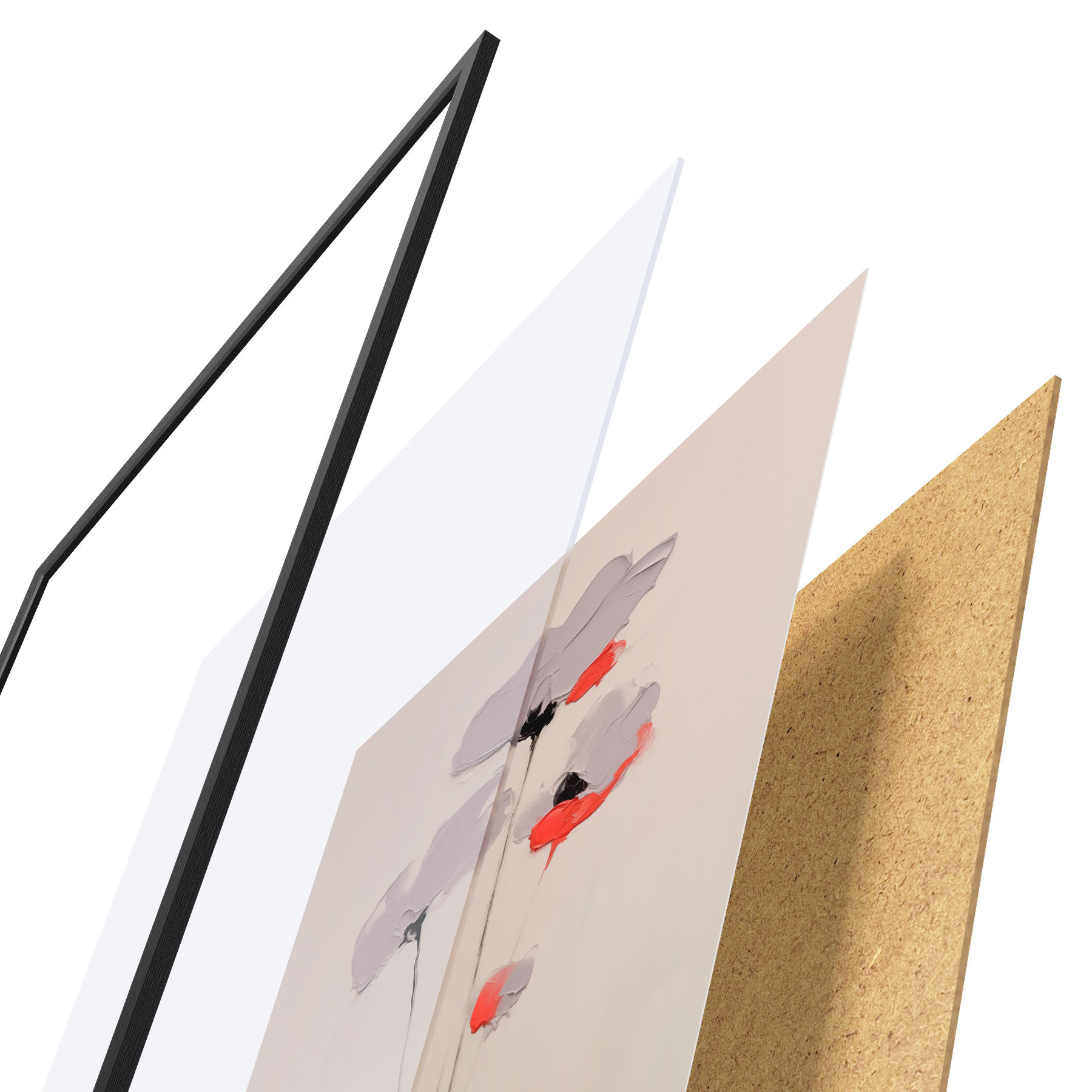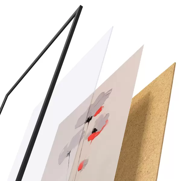 Plakāts sastāv no rāmja, pleksstikla, iespiestā attēla un skaidu plātnes pamatnes. Plakātu var uzreiz piekarināt pie sienas, pateicoties aizmugurē esošajiem stiprinājumiem.