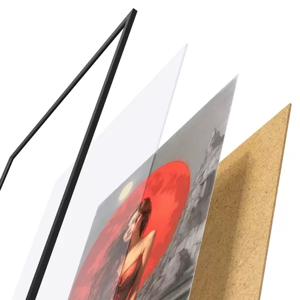 Plakāts sastāv no rāmja, pleksstikla, iespiestā attēla un skaidu plātnes pamatnes. Plakātu var uzreiz piekarināt pie sienas, pateicoties aizmugurē esošajiem stiprinājumiem.