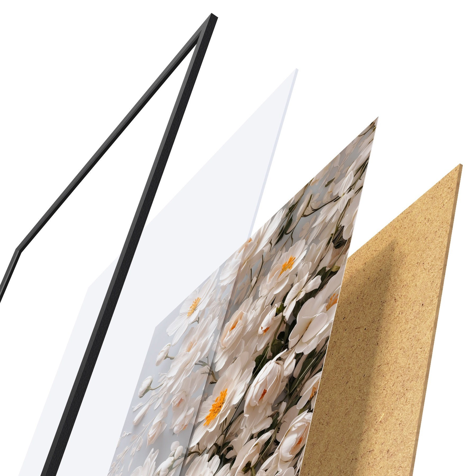 Plakāts sastāv no rāmja, pleksstikla, iespiestā attēla un skaidu plātnes pamatnes. Plakātu var uzreiz piekarināt pie sienas, pateicoties aizmugurē esošajiem stiprinājumiem.