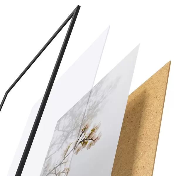 Plakāts sastāv no rāmja, pleksstikla, iespiestā attēla un skaidu plātnes pamatnes. Plakātu var uzreiz piekarināt pie sienas, pateicoties aizmugurē esošajiem stiprinājumiem.