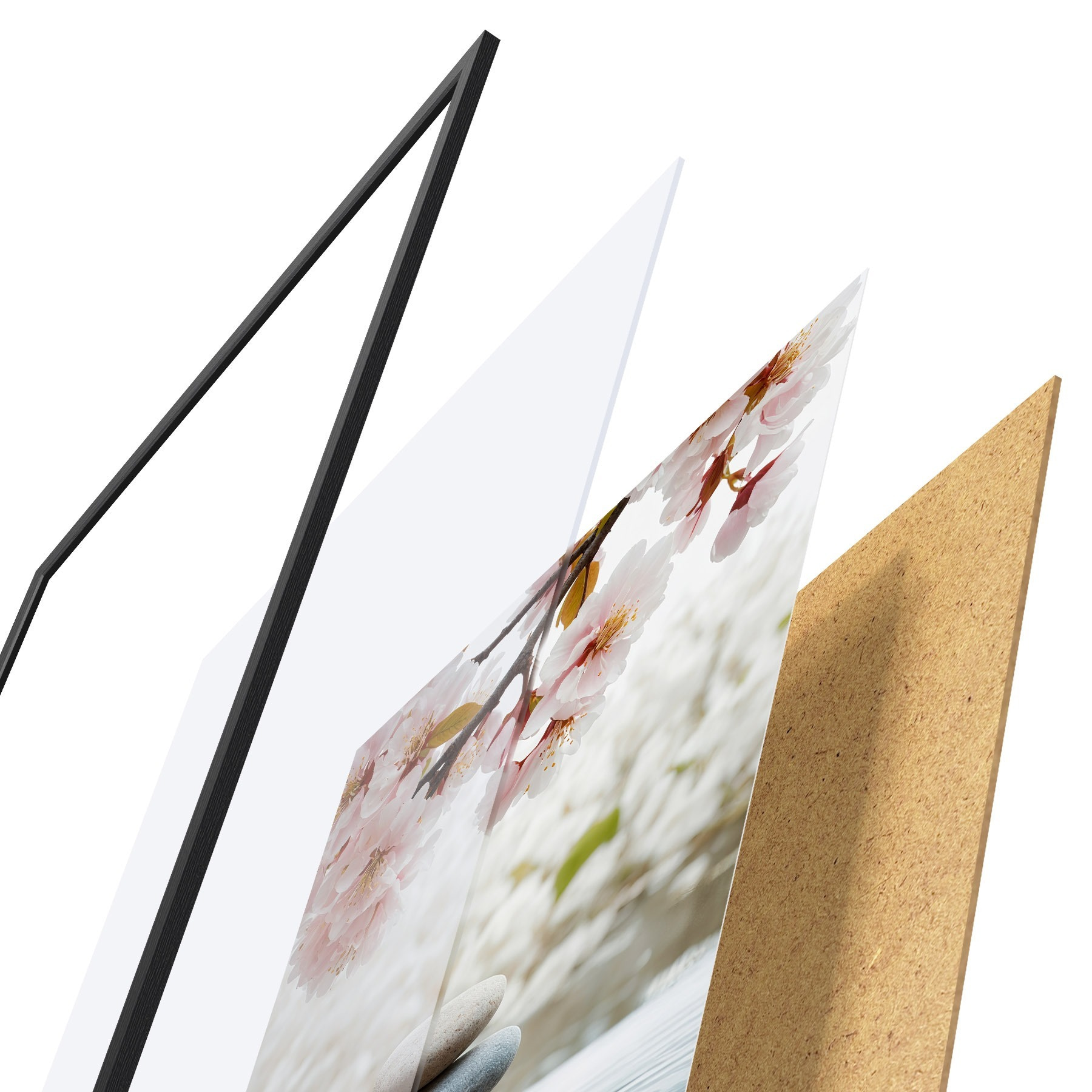 Plakāts sastāv no rāmja, pleksstikla, iespiestā attēla un skaidu plātnes pamatnes. Plakātu var uzreiz piekarināt pie sienas, pateicoties aizmugurē esošajiem stiprinājumiem.