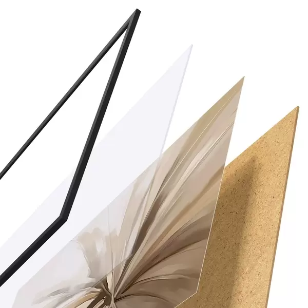 Plakāts sastāv no rāmja, pleksstikla, iespiestā attēla un skaidu plātnes pamatnes. Plakātu var uzreiz piekarināt pie sienas, pateicoties aizmugurē esošajiem stiprinājumiem.
