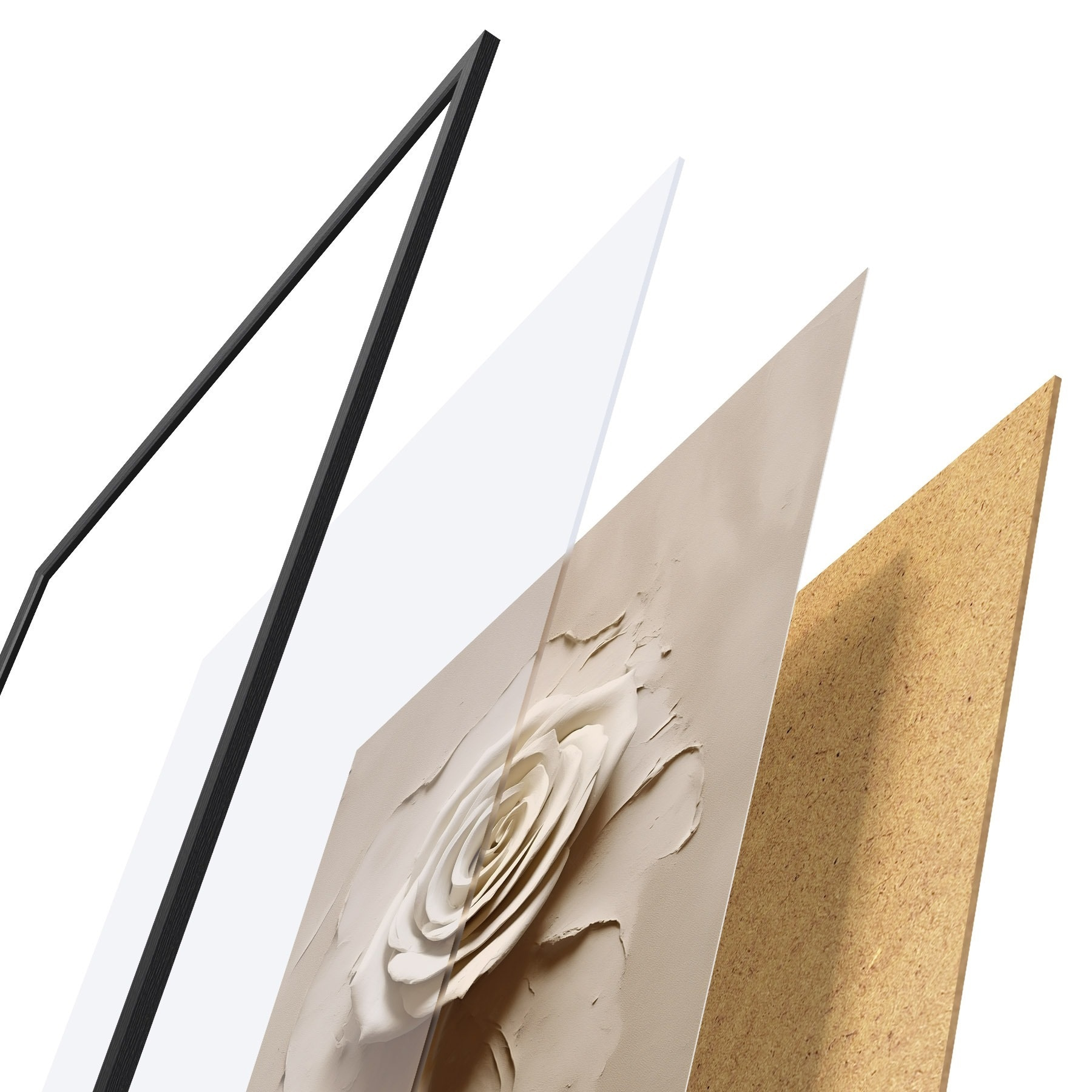 Plakāts sastāv no rāmja, pleksstikla, iespiestā attēla un skaidu plātnes pamatnes. Plakātu var uzreiz piekarināt pie sienas, pateicoties aizmugurē esošajiem stiprinājumiem.
