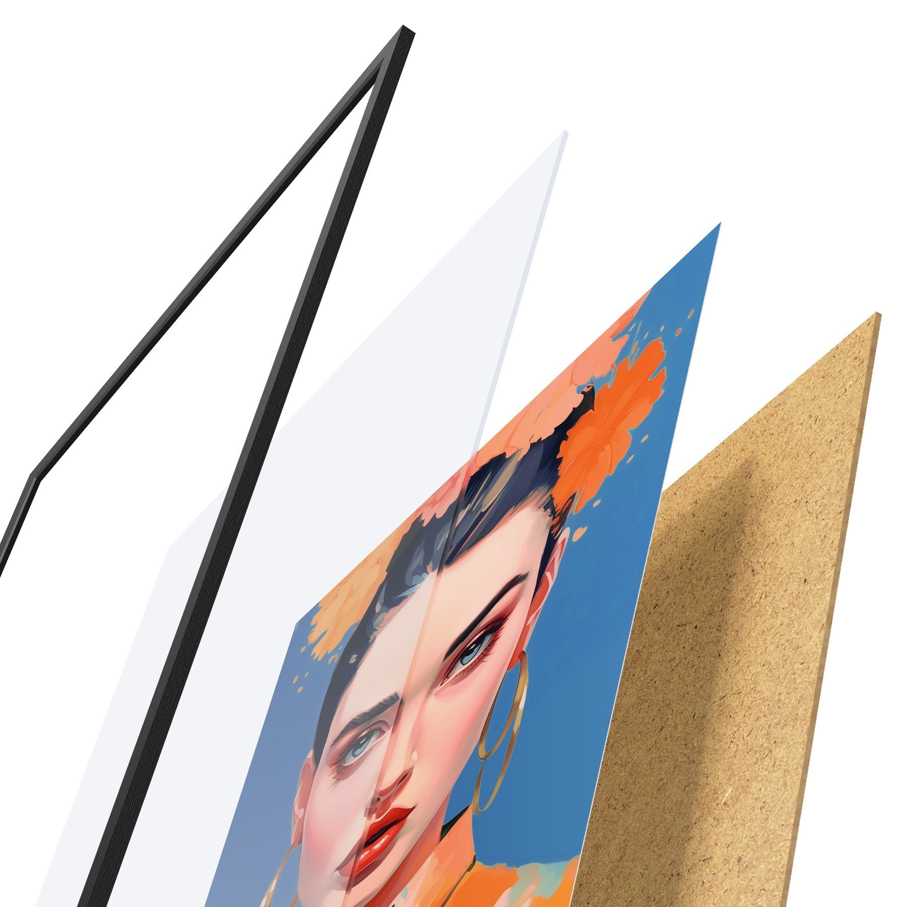 Plakāts sastāv no rāmja, pleksstikla, iespiestā attēla un skaidu plātnes pamatnes. Plakātu var uzreiz piekarināt pie sienas, pateicoties aizmugurē esošajiem stiprinājumiem.