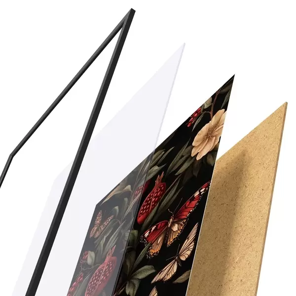 Plakāts sastāv no rāmja, pleksstikla, iespiestā attēla un skaidu plātnes pamatnes. Plakātu var uzreiz piekarināt pie sienas, pateicoties aizmugurē esošajiem stiprinājumiem.