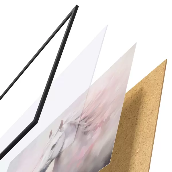 Plakāts sastāv no rāmja, pleksstikla, iespiestā attēla un skaidu plātnes pamatnes. Plakātu var uzreiz piekarināt pie sienas, pateicoties aizmugurē esošajiem stiprinājumiem.
