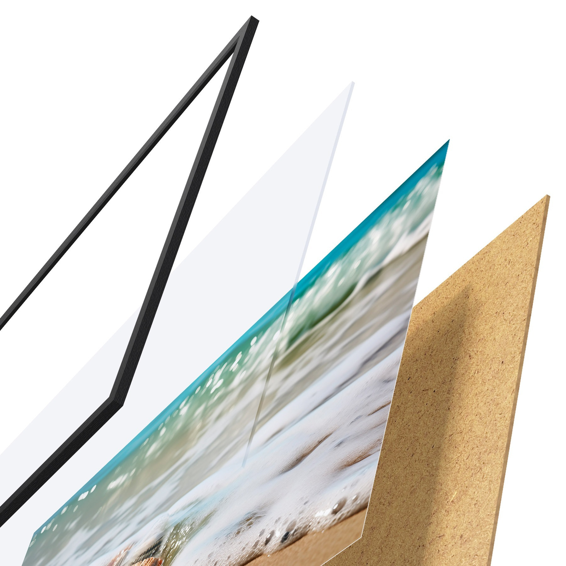 Plakāts sastāv no rāmja, pleksstikla, iespiestā attēla un skaidu plātnes pamatnes. Plakātu var uzreiz piekarināt pie sienas, pateicoties aizmugurē esošajiem stiprinājumiem.