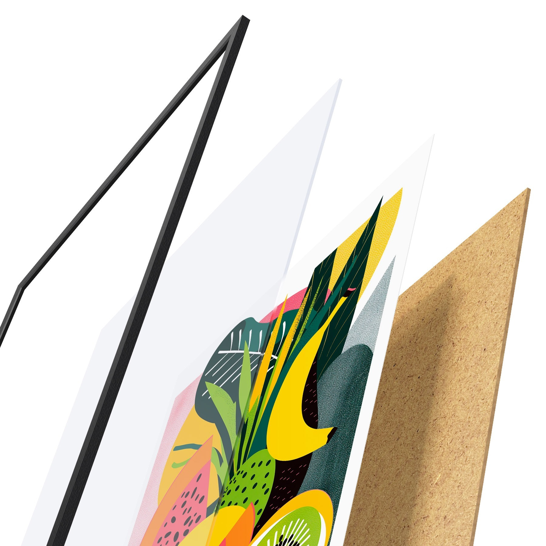 Plakāts sastāv no rāmja, pleksstikla, iespiestā attēla un skaidu plātnes pamatnes. Plakātu var uzreiz piekarināt pie sienas, pateicoties aizmugurē esošajiem stiprinājumiem.