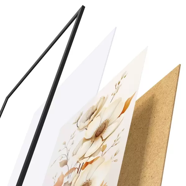 Plakāts sastāv no rāmja, pleksstikla, iespiestā attēla un skaidu plātnes pamatnes. Plakātu var uzreiz piekarināt pie sienas, pateicoties aizmugurē esošajiem stiprinājumiem.