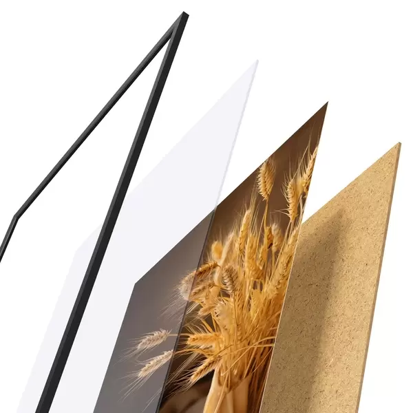 Plakāts sastāv no rāmja, pleksstikla, iespiestā attēla un skaidu plātnes pamatnes. Plakātu var uzreiz piekarināt pie sienas, pateicoties aizmugurē esošajiem stiprinājumiem.