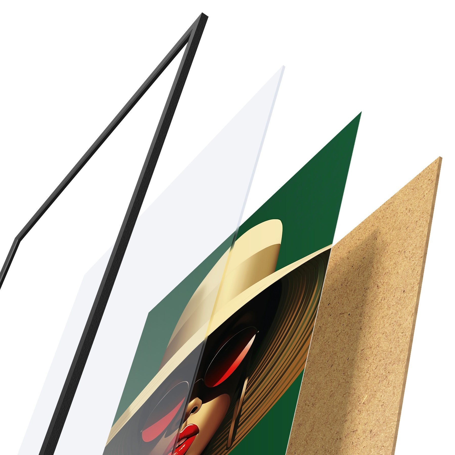 Plakāts sastāv no rāmja, pleksstikla, iespiestā attēla un skaidu plātnes pamatnes. Plakātu var uzreiz piekarināt pie sienas, pateicoties aizmugurē esošajiem stiprinājumiem.