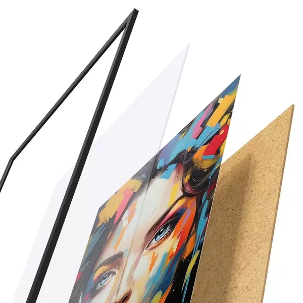 Plakāts sastāv no rāmja, pleksstikla, iespiestā attēla un skaidu plātnes pamatnes. Plakātu var uzreiz piekarināt pie sienas, pateicoties aizmugurē esošajiem stiprinājumiem.