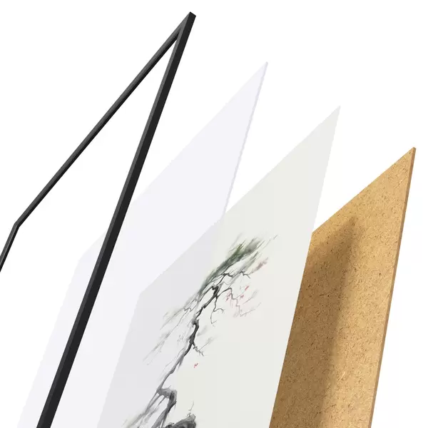 Plakāts sastāv no rāmja, pleksstikla, iespiestā attēla un skaidu plātnes pamatnes. Plakātu var uzreiz piekarināt pie sienas, pateicoties aizmugurē esošajiem stiprinājumiem.