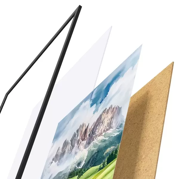 Plakāts sastāv no rāmja, pleksstikla, iespiestā attēla un skaidu plātnes pamatnes. Plakātu var uzreiz piekarināt pie sienas, pateicoties aizmugurē esošajiem stiprinājumiem.