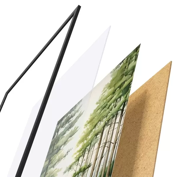 Plakāts sastāv no rāmja, pleksstikla, iespiestā attēla un skaidu plātnes pamatnes. Plakātu var uzreiz piekarināt pie sienas, pateicoties aizmugurē esošajiem stiprinājumiem.