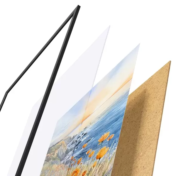 Plakāts sastāv no rāmja, pleksstikla, iespiestā attēla un skaidu plātnes pamatnes. Plakātu var uzreiz piekarināt pie sienas, pateicoties aizmugurē esošajiem stiprinājumiem.