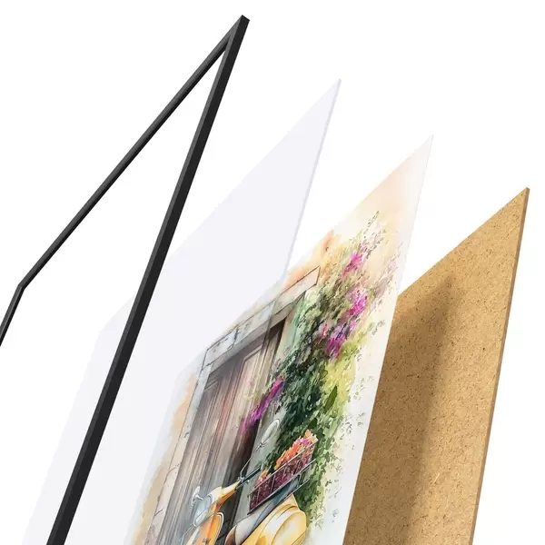 Plakāts sastāv no rāmja, pleksstikla, iespiestā attēla un skaidu plātnes pamatnes. Plakātu var uzreiz piekarināt pie sienas, pateicoties aizmugurē esošajiem stiprinājumiem.
