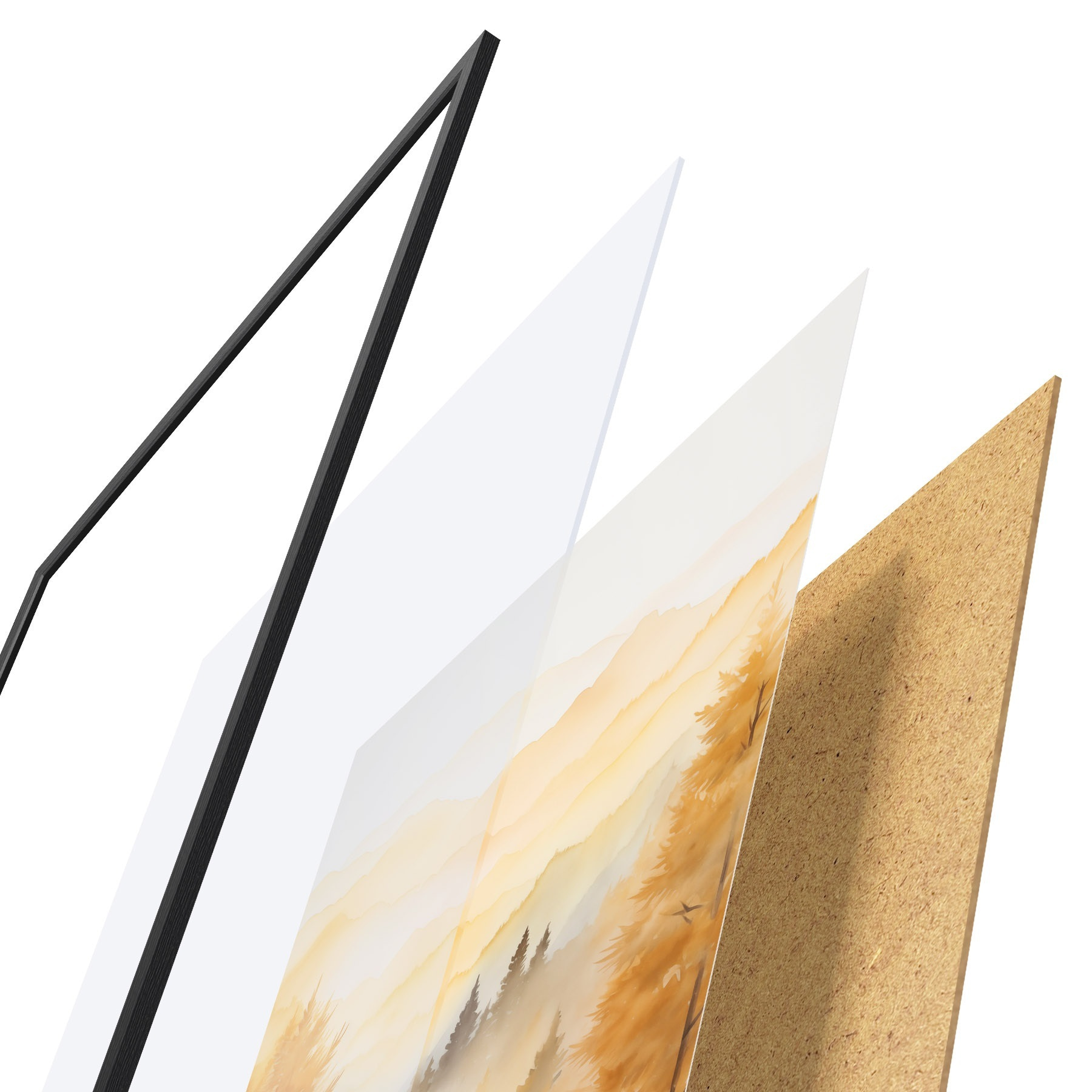 Plakāts sastāv no rāmja, pleksstikla, iespiestā attēla un skaidu plātnes pamatnes. Plakātu var uzreiz piekarināt pie sienas, pateicoties aizmugurē esošajiem stiprinājumiem.