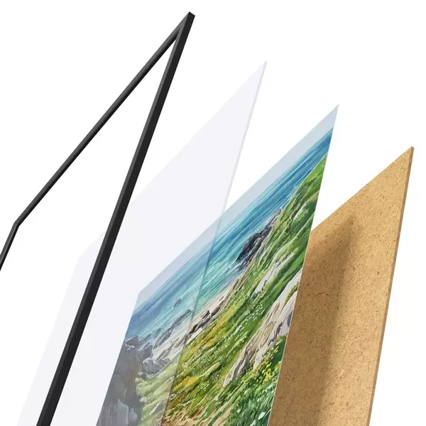Plakāts sastāv no rāmja, pleksstikla, iespiestā attēla un skaidu plātnes pamatnes. Plakātu var uzreiz piekarināt pie sienas, pateicoties aizmugurē esošajiem stiprinājumiem.