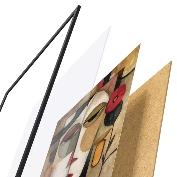 Plakāts sastāv no rāmja, pleksstikla, iespiestā attēla un skaidu plātnes pamatnes. Plakātu var uzreiz piekarināt pie sienas, pateicoties aizmugurē esošajiem stiprinājumiem.