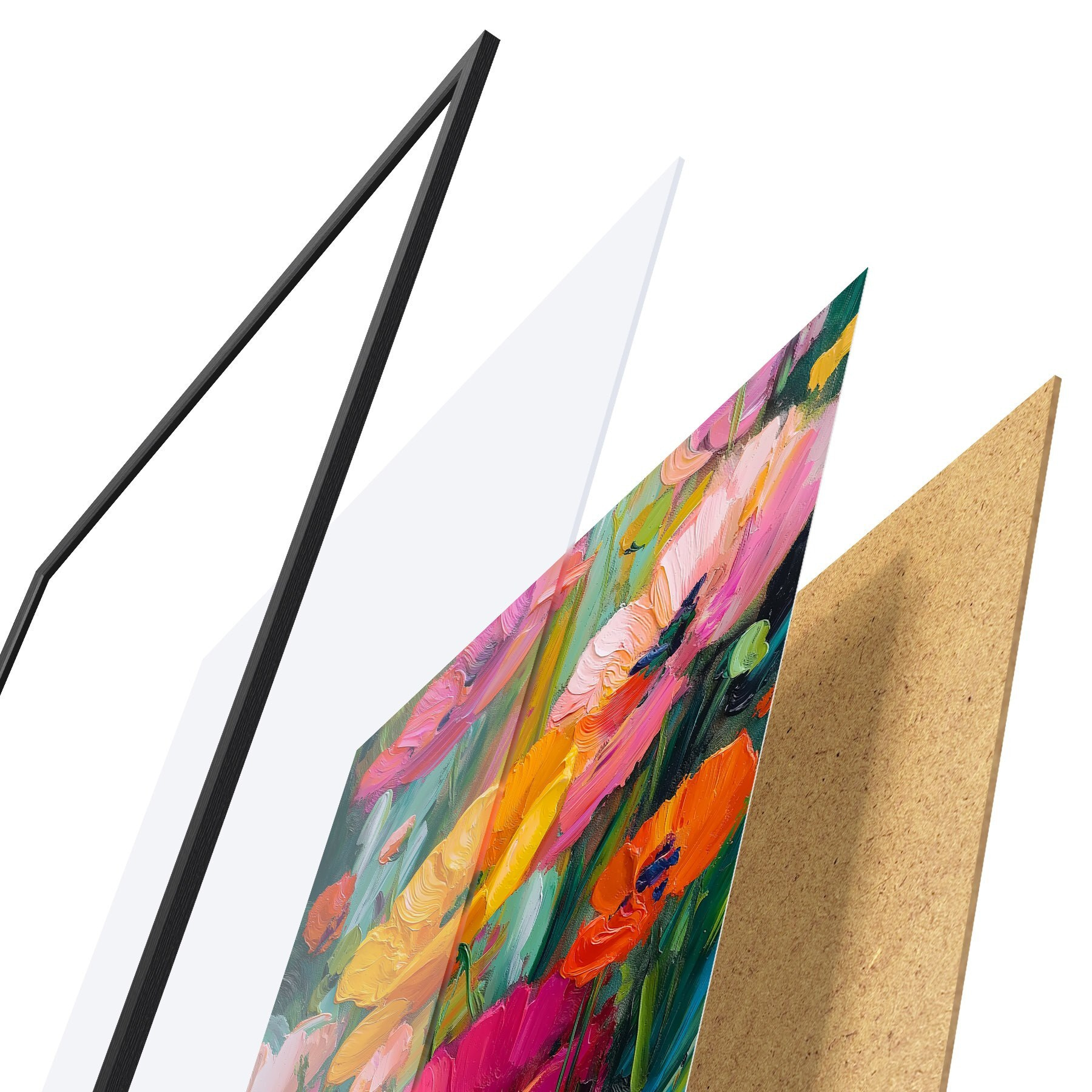 Plakāts sastāv no rāmja, pleksstikla, iespiestā attēla un skaidu plātnes pamatnes. Plakātu var uzreiz piekarināt pie sienas, pateicoties aizmugurē esošajiem stiprinājumiem.