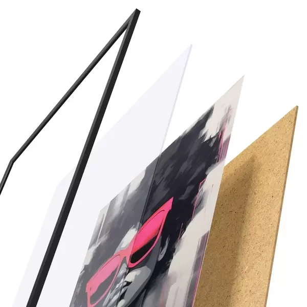 Plakāts sastāv no rāmja, pleksstikla, iespiestā attēla un skaidu plātnes pamatnes. Plakātu var uzreiz piekarināt pie sienas, pateicoties aizmugurē esošajiem stiprinājumiem.