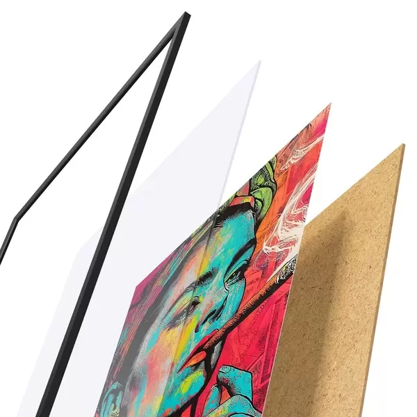 Plakāts sastāv no rāmja, pleksstikla, iespiestā attēla un skaidu plātnes pamatnes. Plakātu var uzreiz piekarināt pie sienas, pateicoties aizmugurē esošajiem stiprinājumiem.