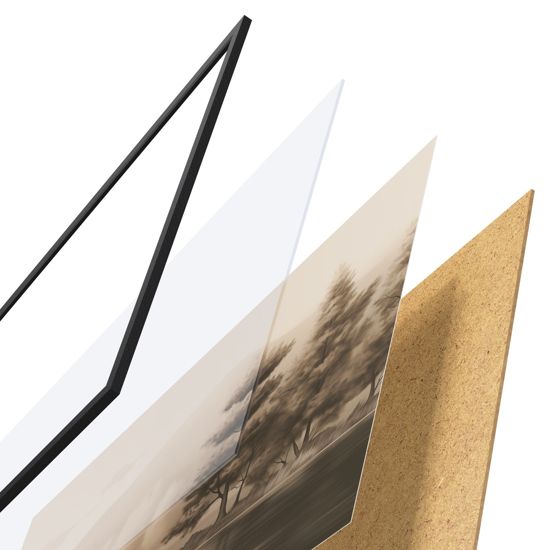 Plakāts sastāv no rāmja, pleksstikla, iespiestā attēla un skaidu plātnes pamatnes. Plakātu var uzreiz piekarināt pie sienas, pateicoties aizmugurē esošajiem stiprinājumiem.