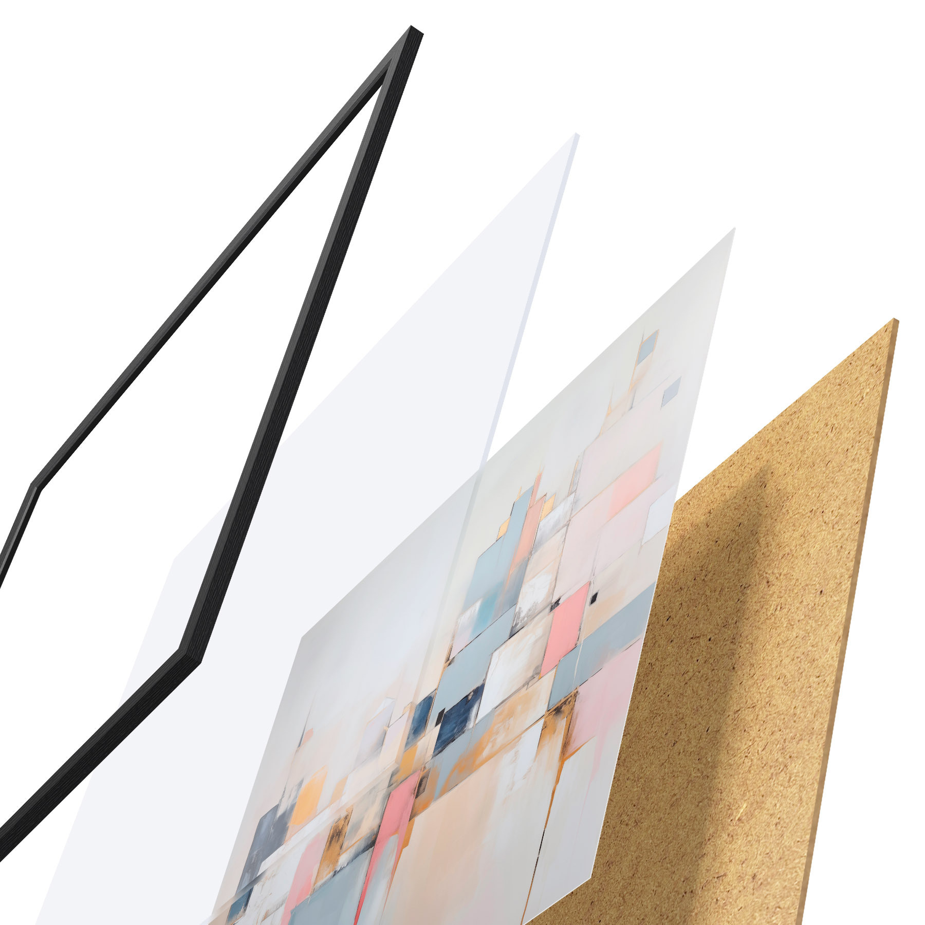 Plakāts sastāv no rāmja, pleksstikla, iespiestā attēla un skaidu plātnes pamatnes. Plakātu var uzreiz piekarināt pie sienas, pateicoties aizmugurē esošajiem stiprinājumiem.