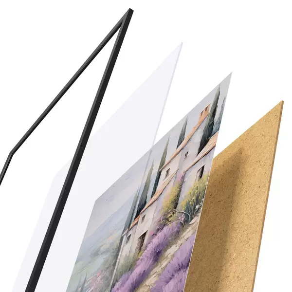 Plakāts sastāv no rāmja, pleksstikla, iespiestā attēla un skaidu plātnes pamatnes. Plakātu var uzreiz piekarināt pie sienas, pateicoties aizmugurē esošajiem stiprinājumiem.