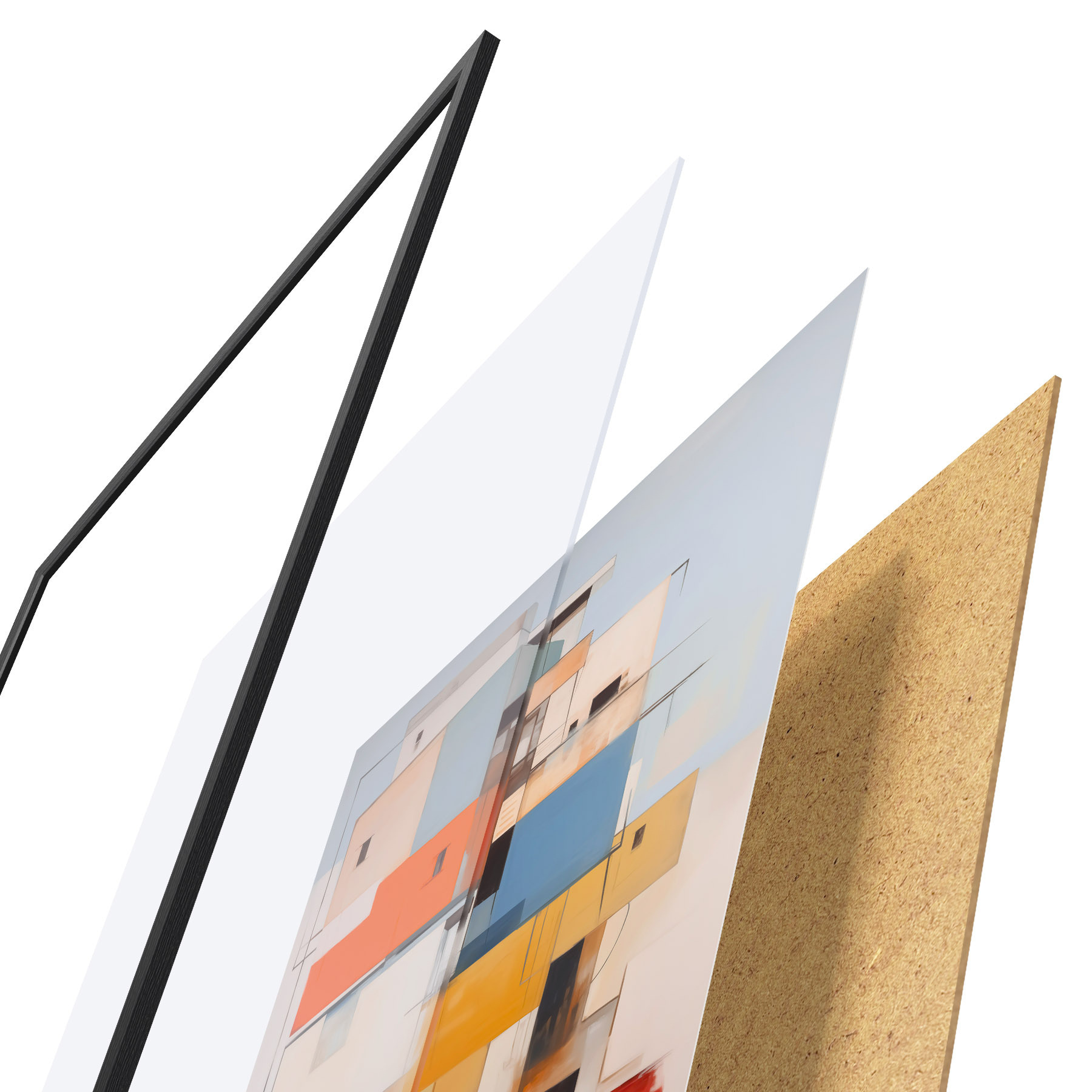 Plakāts sastāv no rāmja, pleksstikla, iespiestā attēla un skaidu plātnes pamatnes. Plakātu var uzreiz piekarināt pie sienas, pateicoties aizmugurē esošajiem stiprinājumiem.