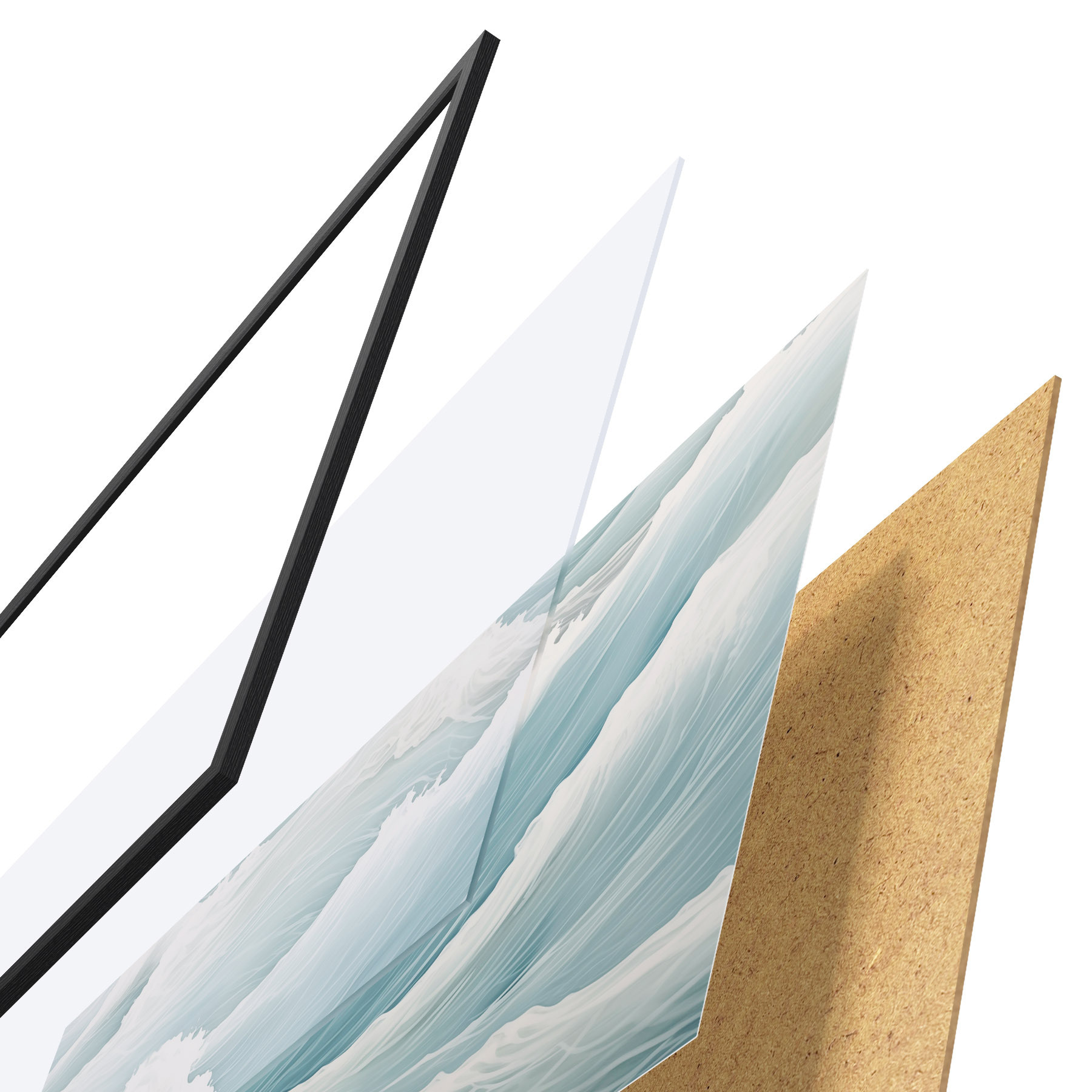Plakāts sastāv no rāmja, pleksstikla, iespiestā attēla un skaidu plātnes pamatnes. Plakātu var uzreiz piekarināt pie sienas, pateicoties aizmugurē esošajiem stiprinājumiem.