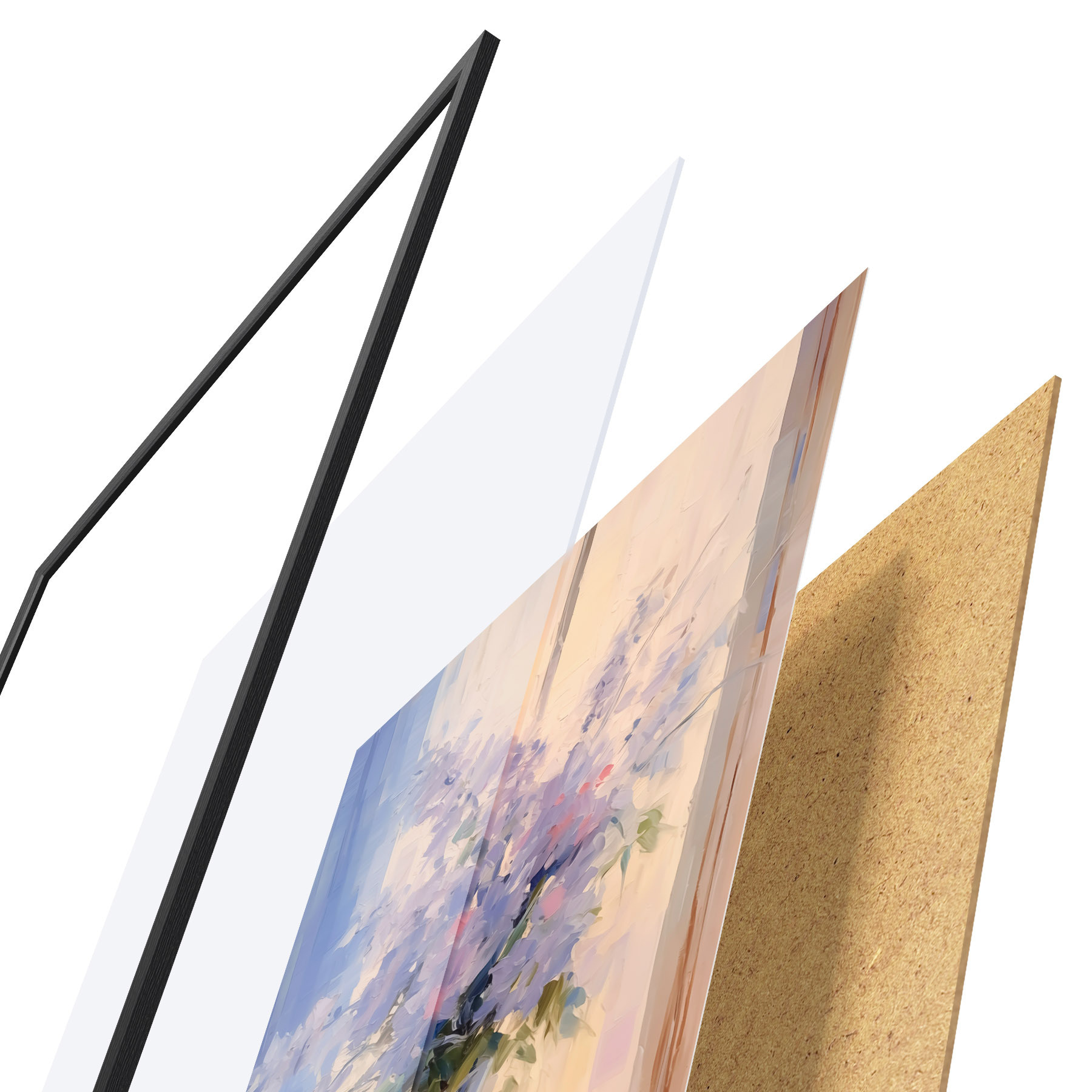 Plakāts sastāv no rāmja, pleksstikla, iespiestā attēla un skaidu plātnes pamatnes. Plakātu var uzreiz piekarināt pie sienas, pateicoties aizmugurē esošajiem stiprinājumiem.