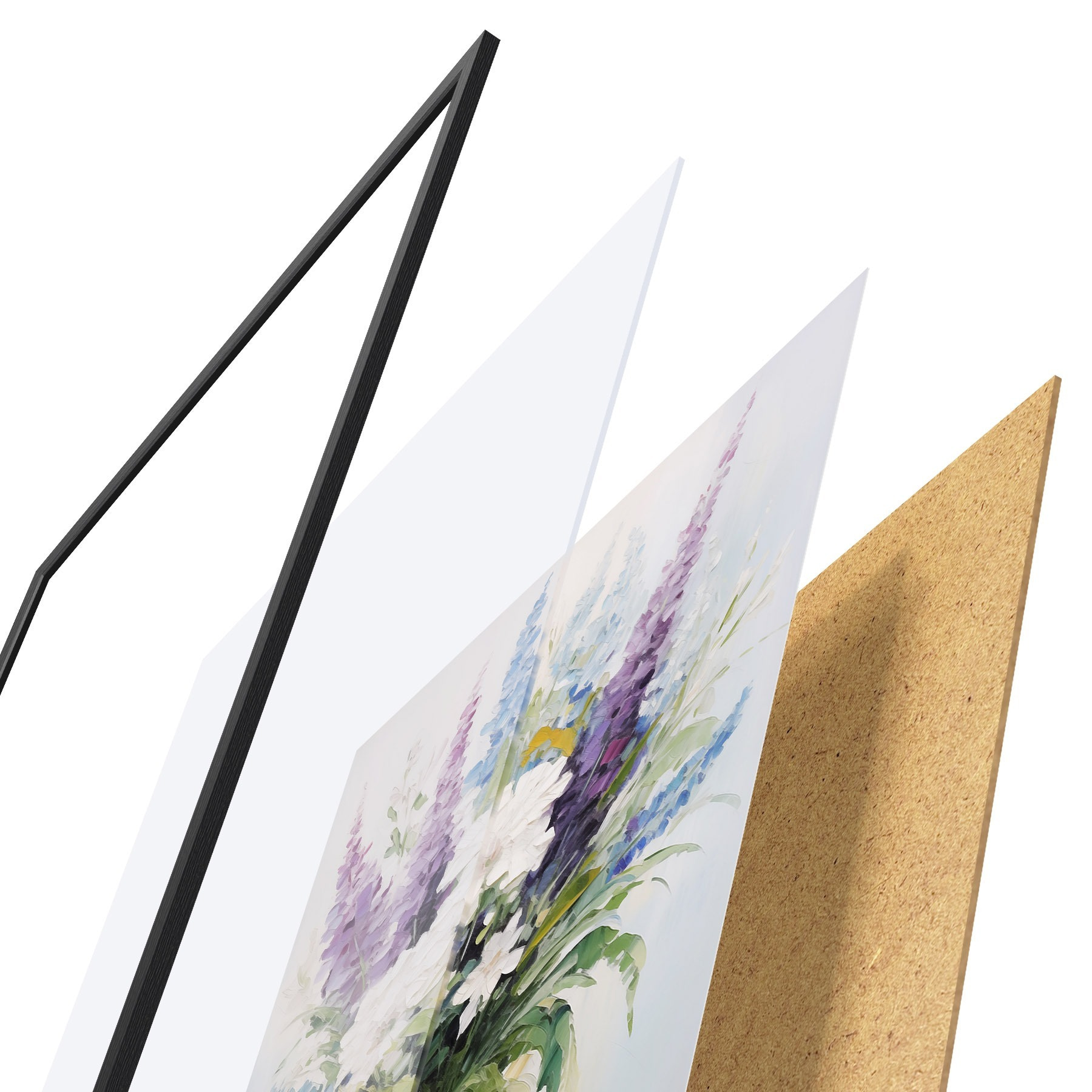 Plakāts sastāv no rāmja, pleksstikla, iespiestā attēla un skaidu plātnes pamatnes. Plakātu var uzreiz piekarināt pie sienas, pateicoties aizmugurē esošajiem stiprinājumiem.