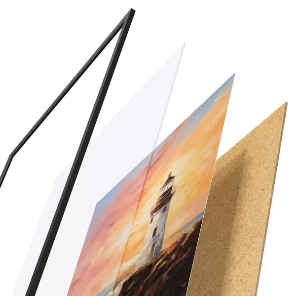 Plakāts sastāv no rāmja, pleksstikla, iespiestā attēla un skaidu plātnes pamatnes. Plakātu var uzreiz piekarināt pie sienas, pateicoties aizmugurē esošajiem stiprinājumiem.