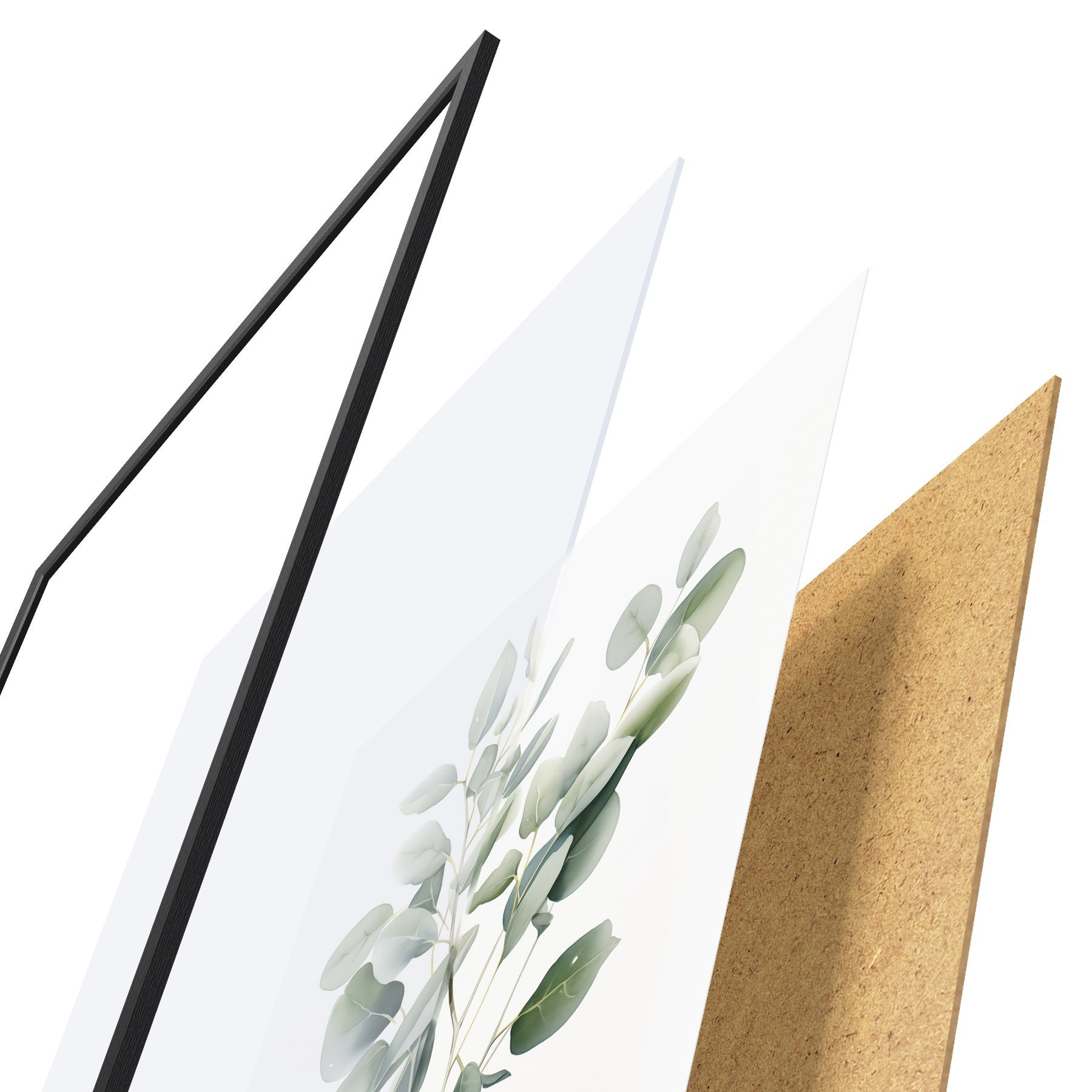 Plakāts sastāv no rāmja, pleksstikla, iespiestā attēla un skaidu plātnes pamatnes. Plakātu var uzreiz piekarināt pie sienas, pateicoties aizmugurē esošajiem stiprinājumiem.