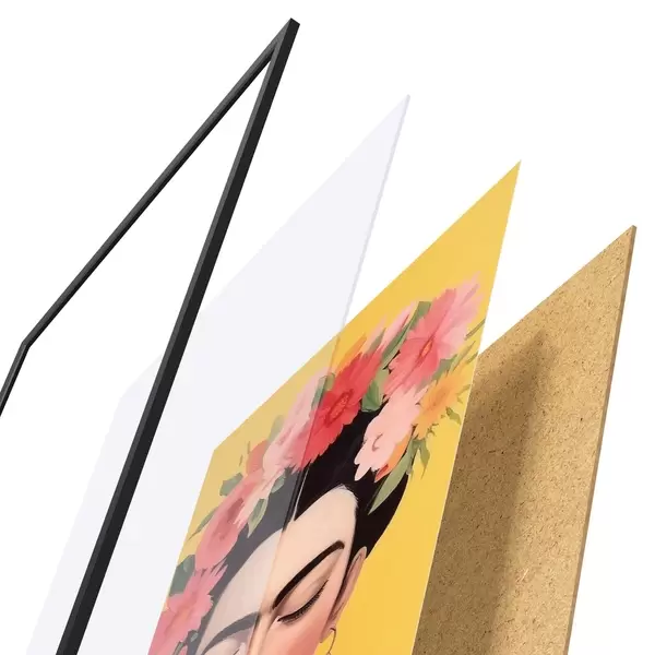 Plakāts sastāv no rāmja, pleksstikla, iespiestā attēla un skaidu plātnes pamatnes. Plakātu var uzreiz piekarināt pie sienas, pateicoties aizmugurē esošajiem stiprinājumiem.