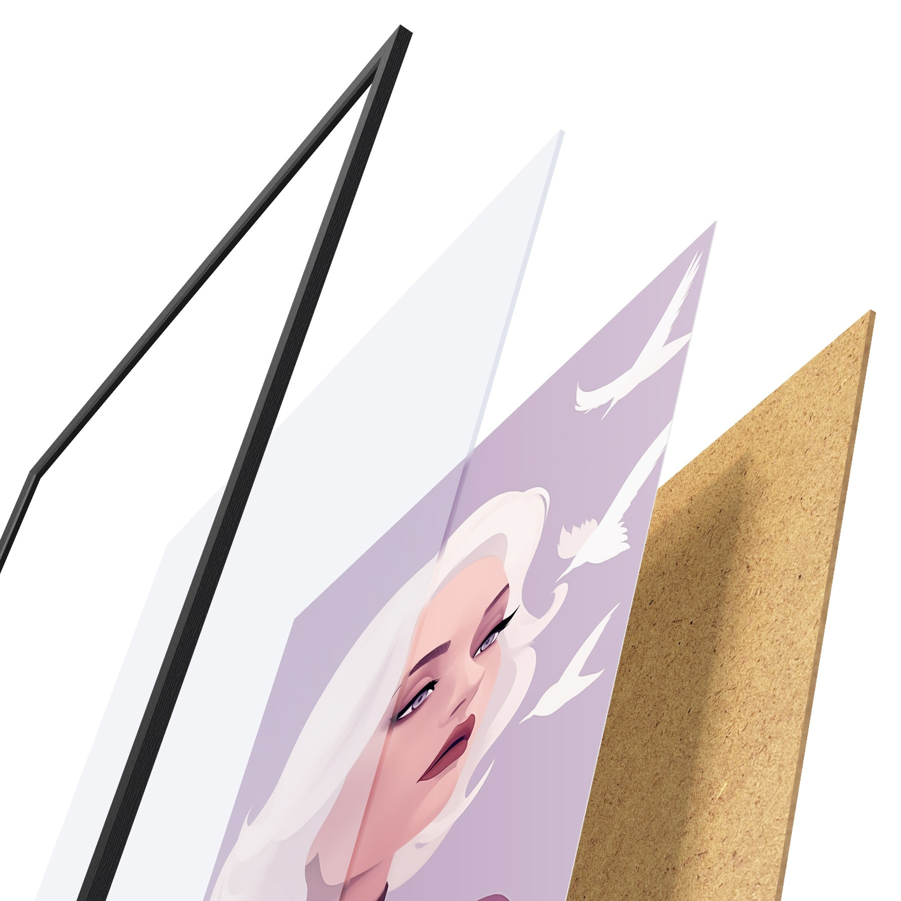 Plakāts sastāv no rāmja, pleksstikla, iespiestā attēla un skaidu plātnes pamatnes. Plakātu var uzreiz piekarināt pie sienas, pateicoties aizmugurē esošajiem stiprinājumiem.