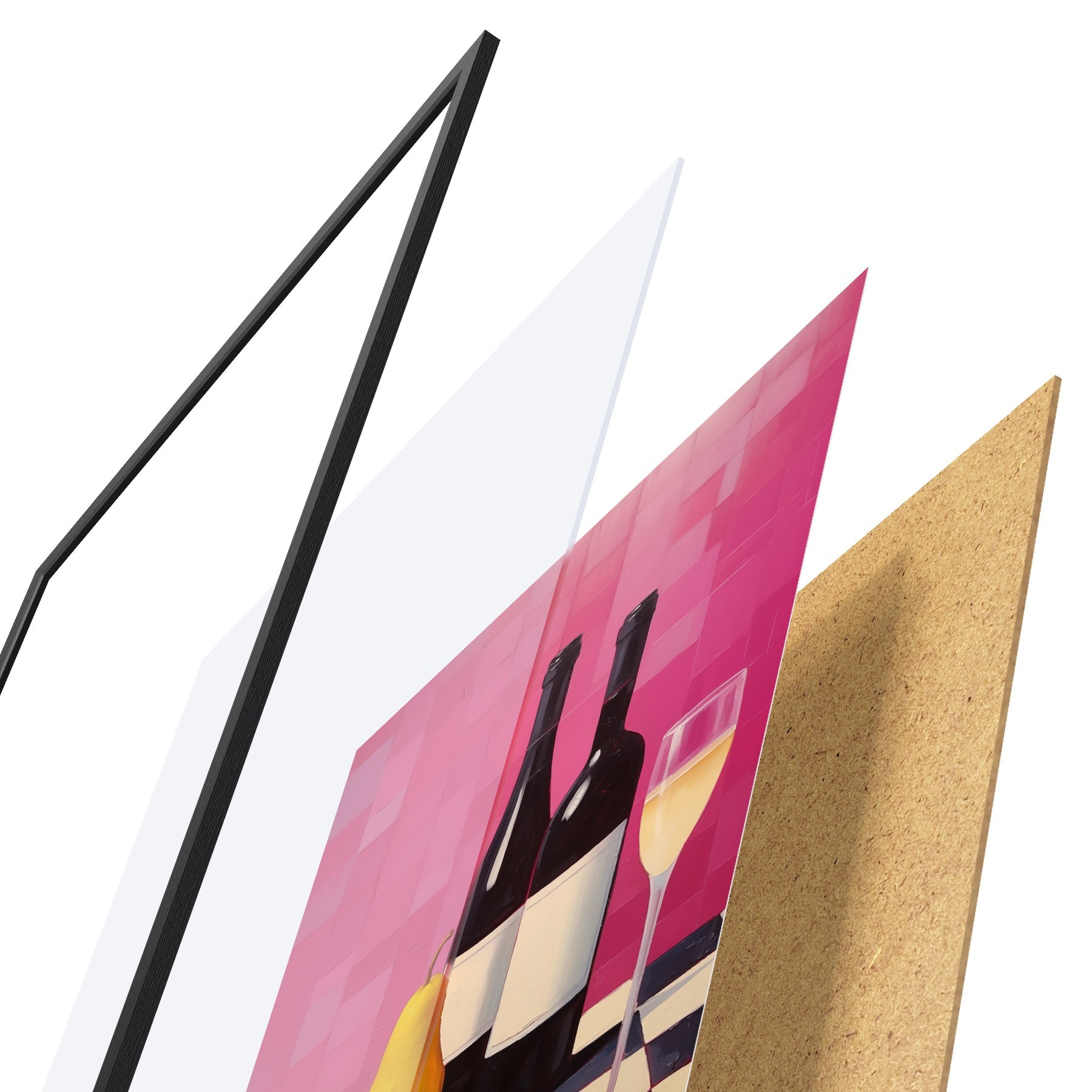 Plakāts sastāv no rāmja, pleksstikla, iespiestā attēla un skaidu plātnes pamatnes. Plakātu var uzreiz piekarināt pie sienas, pateicoties aizmugurē esošajiem stiprinājumiem.