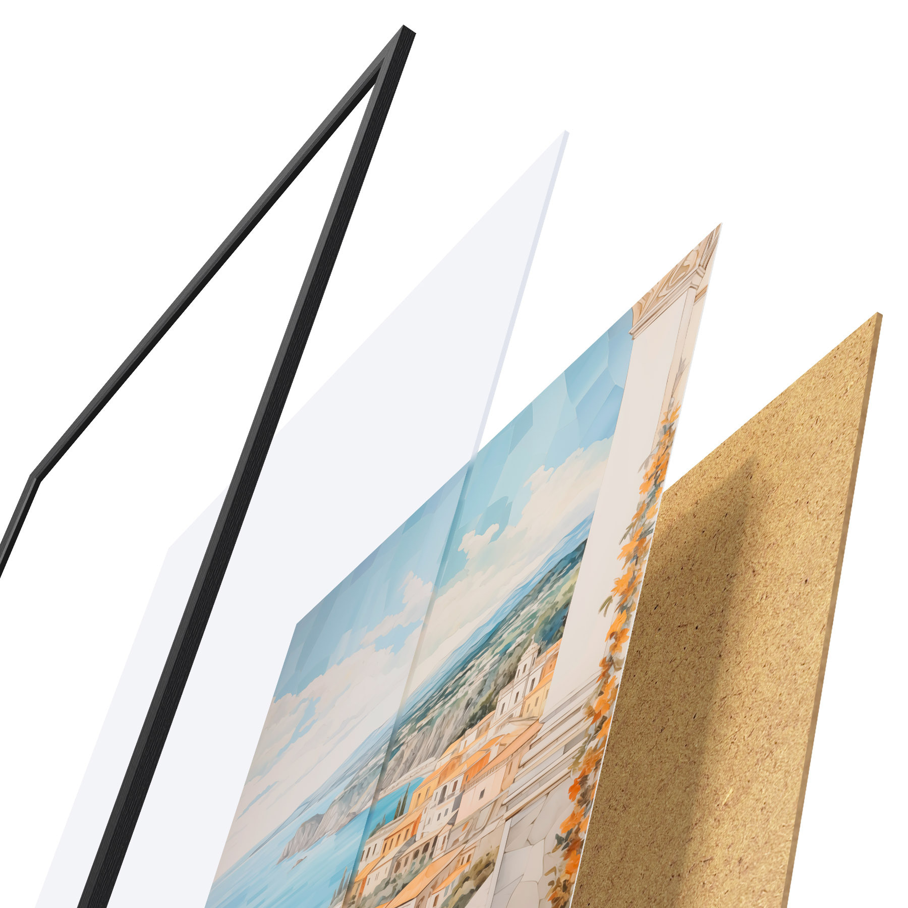 Plakāts sastāv no rāmja, pleksstikla, iespiestā attēla un skaidu plātnes pamatnes. Plakātu var uzreiz piekarināt pie sienas, pateicoties aizmugurē esošajiem stiprinājumiem.
