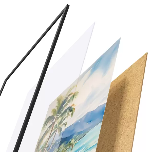 Plakāts sastāv no rāmja, pleksstikla, iespiestā attēla un skaidu plātnes pamatnes. Plakātu var uzreiz piekarināt pie sienas, pateicoties aizmugurē esošajiem stiprinājumiem.