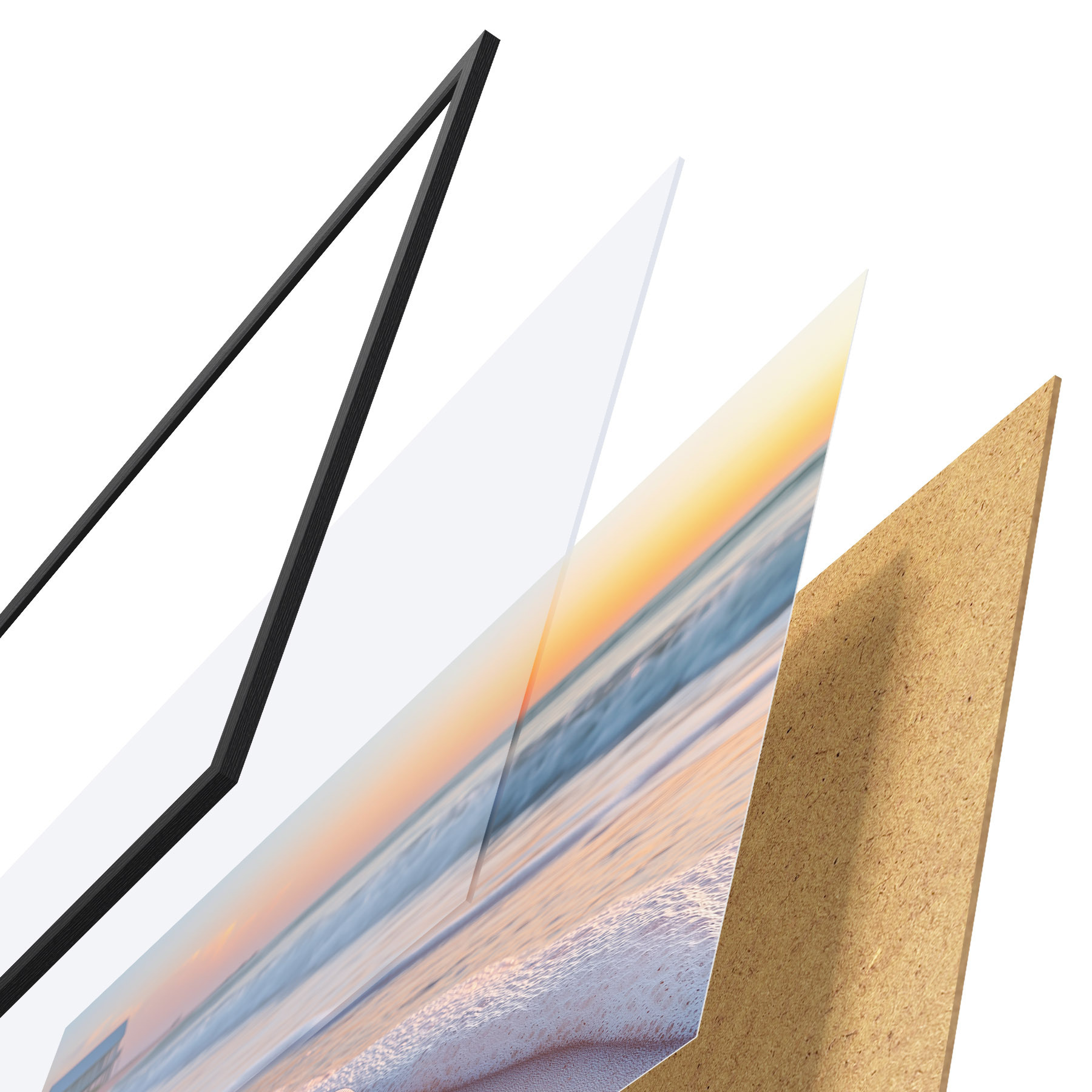 Plakāts sastāv no rāmja, pleksstikla, iespiestā attēla un skaidu plātnes pamatnes. Plakātu var uzreiz piekarināt pie sienas, pateicoties aizmugurē esošajiem stiprinājumiem.