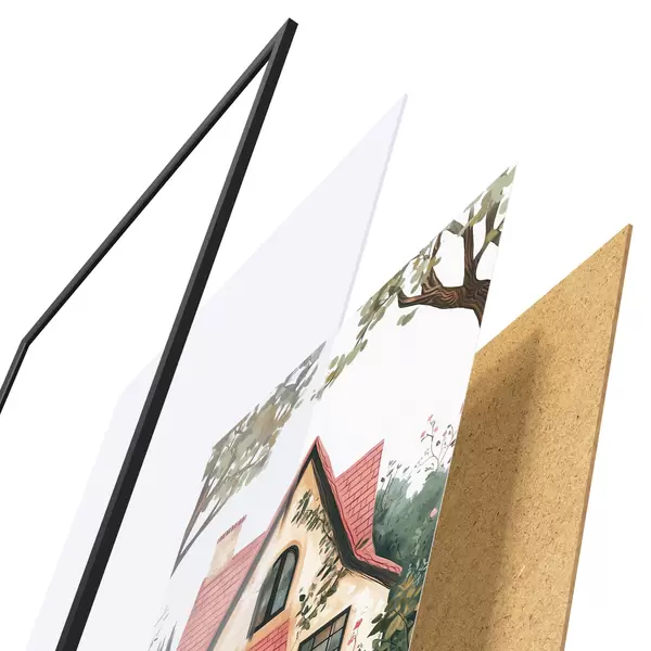 Plakāts sastāv no rāmja, pleksstikla, iespiestā attēla un skaidu plātnes pamatnes. Plakātu var uzreiz piekarināt pie sienas, pateicoties aizmugurē esošajiem stiprinājumiem.