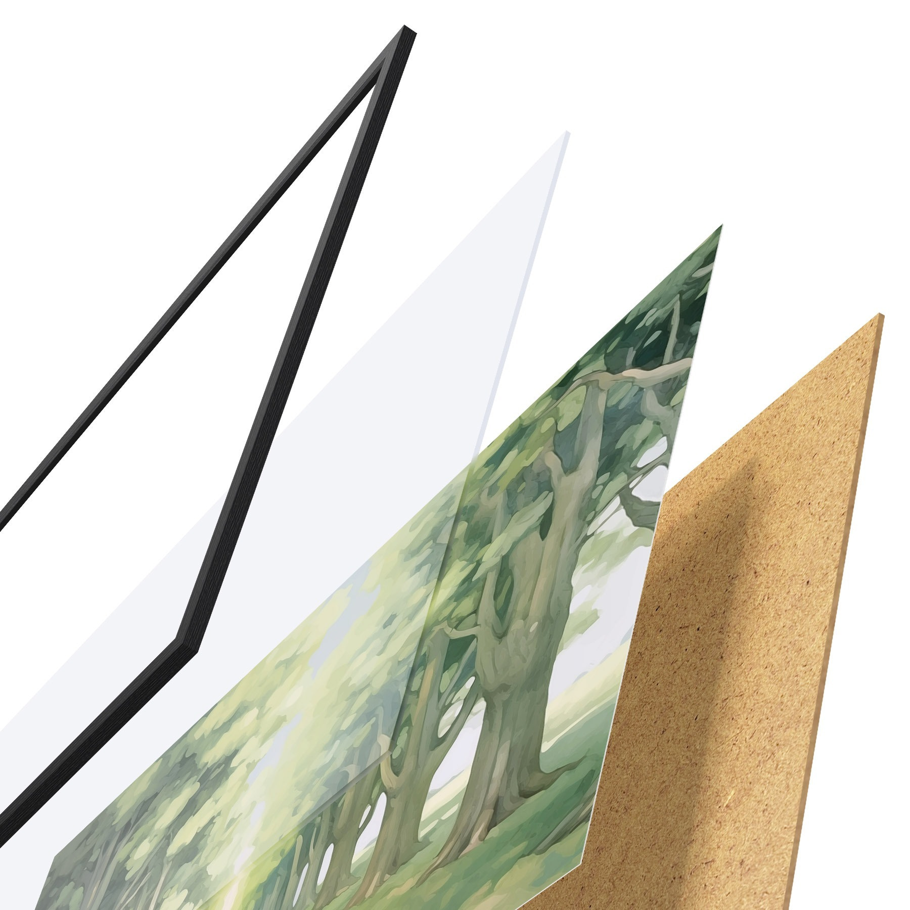 Plakāts sastāv no rāmja, pleksstikla, iespiestā attēla un skaidu plātnes pamatnes. Plakātu var uzreiz piekarināt pie sienas, pateicoties aizmugurē esošajiem stiprinājumiem.
