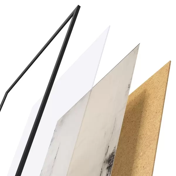 Plakāts sastāv no rāmja, pleksstikla, iespiestā attēla un skaidu plātnes pamatnes. Plakātu var uzreiz piekarināt pie sienas, pateicoties aizmugurē esošajiem stiprinājumiem.