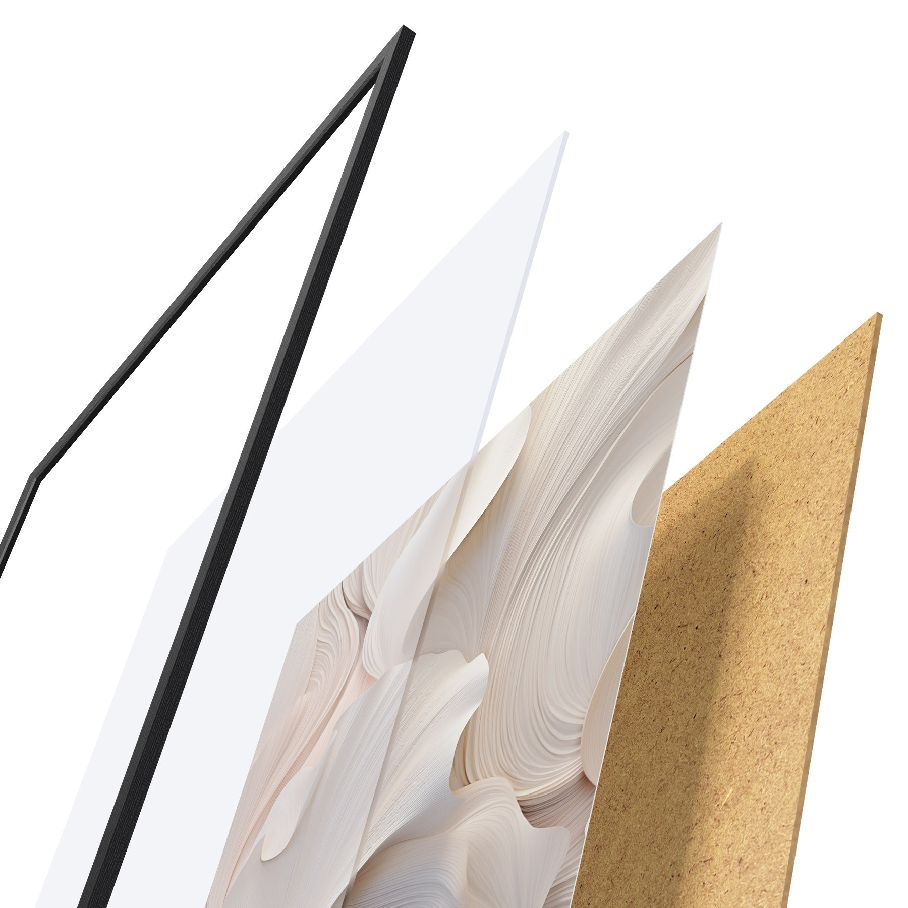 Plakāts sastāv no rāmja, pleksstikla, iespiestā attēla un skaidu plātnes pamatnes. Plakātu var uzreiz piekarināt pie sienas, pateicoties aizmugurē esošajiem stiprinājumiem.