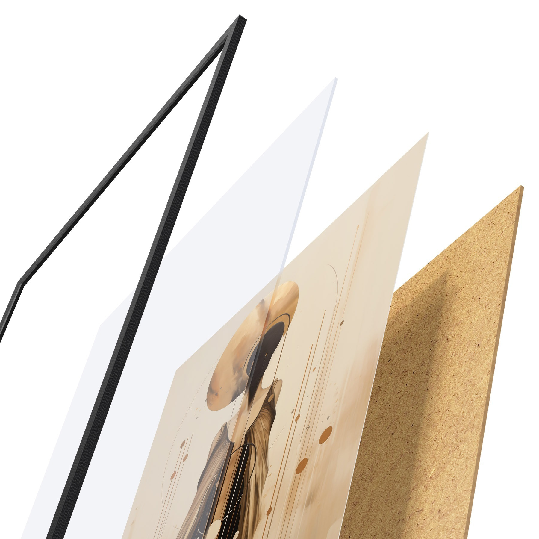 Plakāts sastāv no rāmja, pleksstikla, iespiestā attēla un skaidu plātnes pamatnes. Plakātu var uzreiz piekarināt pie sienas, pateicoties aizmugurē esošajiem stiprinājumiem.