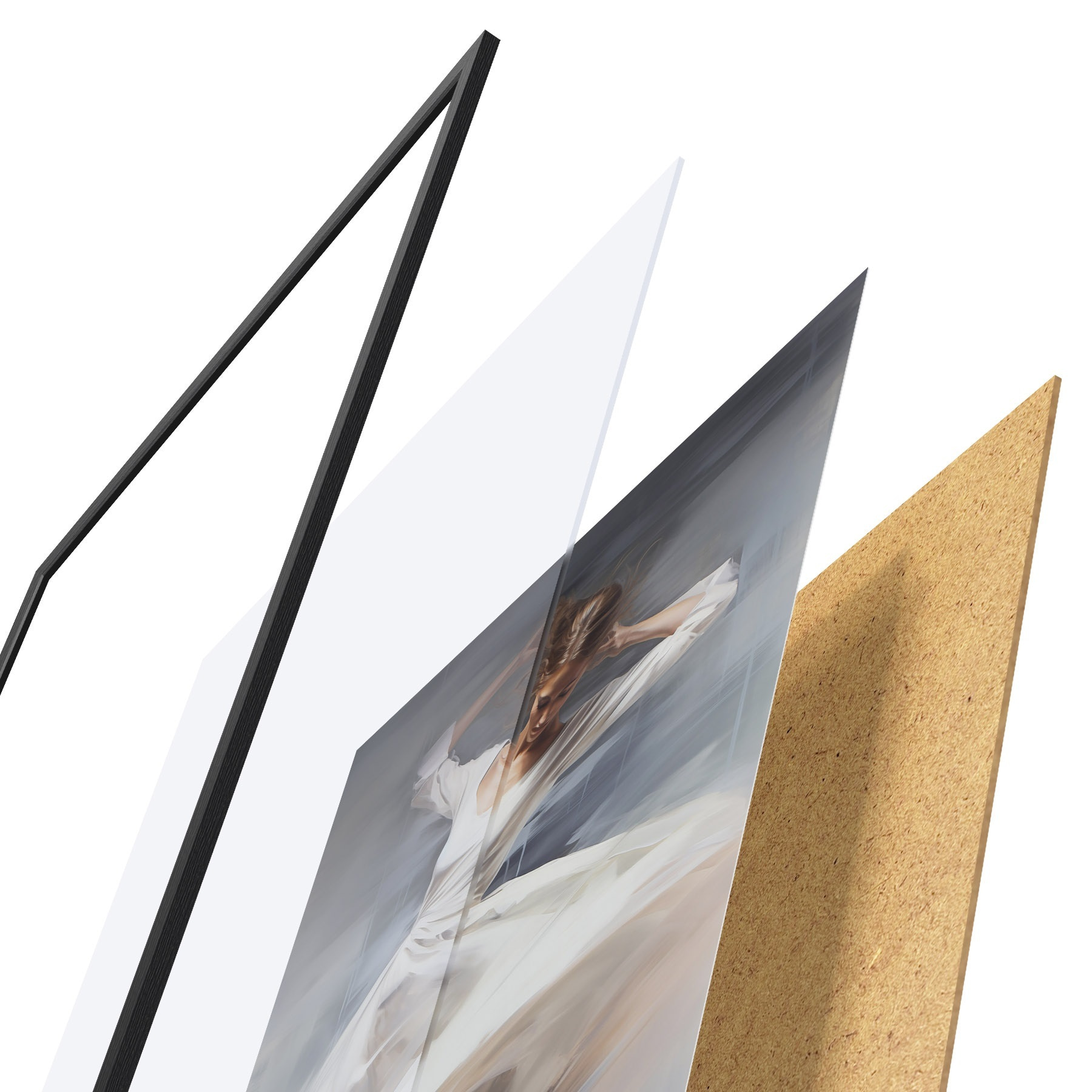 Plakāts sastāv no rāmja, pleksstikla, iespiestā attēla un skaidu plātnes pamatnes. Plakātu var uzreiz piekarināt pie sienas, pateicoties aizmugurē esošajiem stiprinājumiem.