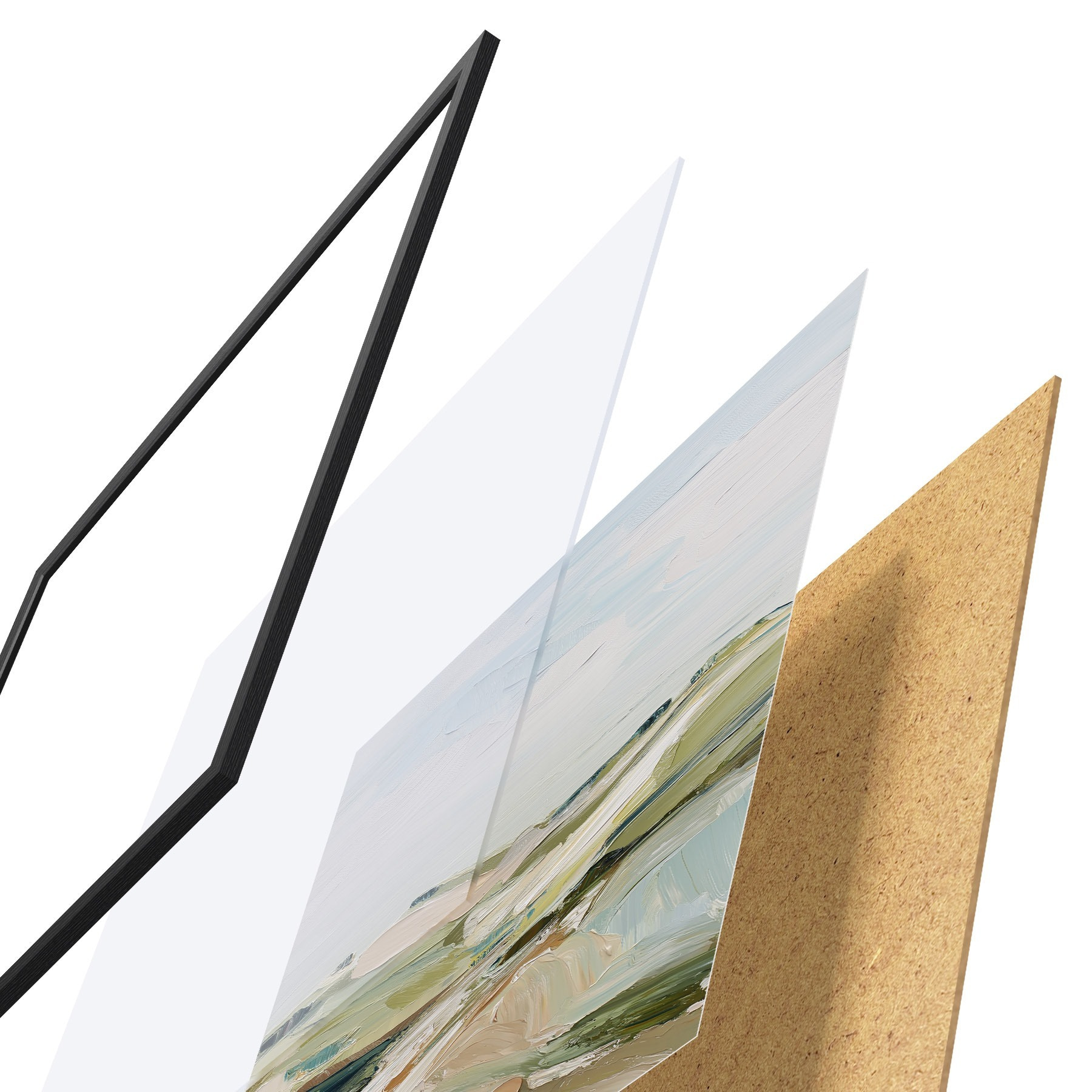 Plakāts sastāv no rāmja, pleksstikla, iespiestā attēla un skaidu plātnes pamatnes. Plakātu var uzreiz piekarināt pie sienas, pateicoties aizmugurē esošajiem stiprinājumiem.
