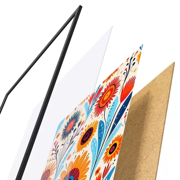 Plakāts sastāv no rāmja, pleksstikla, iespiestā attēla un skaidu plātnes pamatnes. Plakātu var uzreiz piekarināt pie sienas, pateicoties aizmugurē esošajiem stiprinājumiem.